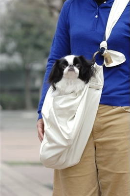 立って肩から掛けるとこのようになります(ペットファースト商品写真)