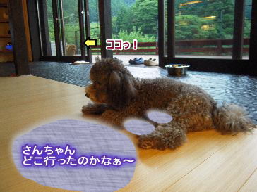 食事の写真も掲載してっ!のお声にハッ ![]() 食い意地がはっていて、すっかり忘れてました。 カメラ持つ前に既に箸を付けてました ![]() では、まずは、朝靄の中の散歩です。 別邸の周りは全て庭… でも広すぎて、呼び戻しが出来ないワンコはノーリードは無理です。 当然さんちゃん&こじょりんも無理 ![]() 竹林がとても見事でした。 さぁ、お散歩のあとはモーニングです。 まずは、レストランに入る前に、ラウンジでワンコに朝ごはんを上げます。 朝・夕とも、レストランにワンコは入れますが、食事はNGです。 忘れてました、お2階の寝室と穴倉リビングを紹介します。 寝室は天井が斜めになっていて低いのですが、それがまた妙に落ち着いて、朝までグッスリです。 そうそう、わんこは1日2食だからね… ![]() お昼は、近くの河津七滝のひとつ「かに滝」の近くの古民家の「肉月」でひもの定食を食べました。 此処は、ホテルの方に教えて貰いました。 ホームページも無いし、ペット同伴可とも書いてないので、中々の穴場です。 さんちゃんは、横の椅子に乗りあがり、必死に干物を狙ってます。 しょうがないので、大根おろしを上げてみたら、喜んで舐めてました ![]() さて、最後は夕食ですが、夕食はホテルの提携先の和食屋さんで、懐石を頂きました。 写真は撮るのが下手で不味そうに見えますが美味しかったです。 ![]() この日は動画も撮ったのですが、ネットが不安定なのでUPできませんでした。 帰ったら、UPしたいと思います。 花より団子のさんちゃんに、いつものポチッをお願いしま~す! PR 昨日お知らせしましたが、今日から、さんちゃん&ごじょりんを連れて伊豆旅行の始まりです。 上記2枚の写真はホテルのラウンジです。 料理はイタリアンなんですが、至る所にバリ島の匂いがしました。 私のもっとも好む雰囲気で ![]() ↑ホテルのお土産コーナー、、此処もバリの雰囲気。。。 部屋は別邸です。 今日は1階のリビングと広~い、テラス、、を紹介します。 テラスはドックランとしても充分の広さがあります。 さんちゃん&ごじょりんも景色が良くて広いテラスがお気に召したようです ![]() てな、オチで、、、今夜はここまで ![]() 車酔いで頑張ったさんちゃんにエールを ![]() 明日8月9日から16日まで、さんちゃん&ごじょりんを連れて伊豆に行って参ります