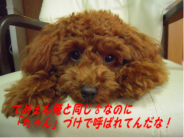 今日はカメラを片手に四苦八苦しながら、撮りまくっていました。 散歩の時はいくらカメラが良くても、いいシーンを逃してします>< で、お散歩から帰ってきてから、丁度真上の部屋のランちゃん♂とランママが遊びに来てくれました。 ランちゃんの写真を撮らしてほしいというお願いから、いつのまにかカメラマンはランママにバトンタッチ。。 おぉぉぉ、、すごい!!犬の撮り方をよ~く知ってます。 と、言うことで本日は意味も無く、おNEWのカメラでとったさん&ごじょ&ランちゃんの写真をUPします。 知り合いになってから間が無いのに、3匹は気が合うようで、楽しく遊んで、時には一人遊びしたりしなか゜ら過ごしてました。 ランちゃんが我が家のように寛いでくれるのはとっても嬉しい(≧ ≦)Ω それではまず、カメラマンrisakoから… と、思ったら~~散歩で撮った写真が無い~~o( _ _ )o SDカード入れないで本体に高画質で撮ったから枚数が無くて消しながら撮ってたんです>< と、言う事で仕切り直し… 本日のカメラマンはランママさんでぇぇす♪ と、思い画像をアップロードしたら、拡張子の違いで認識できませんでした(┳◇┳)ビェーーーン 忍者ブログはJPEG, GIF, PNG に関しては自動リサイズ機能が有効になります。 が、カメラからPCに保存したら、拡張子がJPG… 拡張子をGIFに変更したんですが、画像として忍者ツールが認識してくれませんでした>< よって、本日写真無し(笑) 明日から一泊で山梨県の石和温泉にさん&ごじょを連れて旅行に行ってきます。 日曜日の夕方、ランママに拡張子変更をお願いしましたので、その時はUPできると思います。 ランママがPCに詳しくて大助かりヘ(^∇^ヘ)ヘ お知り合いになれて一番喜んでいるのはきっと私でしょうね(笑) てなことで、日曜日に…