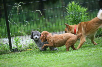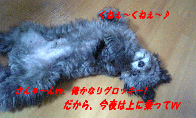 今日は私が午前中病院周りで、午後は自宅で仕事していたので、ネタがありませm(_ _;)m で、奥の手を… 別ブログで掲載した写真を此処で掲載しま~すヾ(--;)ぉぃぉぃ 5月、リンクに掲載しているムーヴオン保育園主催のドックホリデェーのイベントに参加した時の写真、いや、正確に言うと参加して家に帰ってバタンキューだった写真です ![]() 何故、イベントの写真が無いかと言うと、単純にカメラ忘れたからです。 でもって慣れていないので、携帯で撮るという行為すら忘れてました。 7月のドックホリデェーは「長瀞で川遊び」です。 その時は絶対にカメラ忘れないぞっ! と力を入れて思えば思うほど忘れそう>< 興味のある方はムーヴオンのHPを覗いて見て下さい。 生徒でなくても参加できるそうでよ。 初参加の私でも充分楽しめました。 そして、私が何故上の写真にあんな妄想したかと言うと…((^┰^))ゞ ♂♀だからなのか、いつも2匹で遊んでいるんです。 大概はごじょりんりのおもちゃをさんちゃんが横取りして、ごじょりんに追いかけられて、 くんずほぐれずのレスリングが始まります。 よ~く、見てると面白いんです。 ごじょりんが必死になってさんちゃんを後ろから覆い被さるように攻撃しています。 おもちゃを取られるヘタレな癖に♂の本能ムキ出しです(笑) ごじょりんは本当に♂の本能が幼い時から強いみたいです。 4ヶ月頃から足を上げておしっこをするようになりました。 お散歩に行くと、おしっこが出ないのに、片足を上げてマーキングの真似っこ。 ウチのマンションは一家に2頭まで、繁殖は禁止なんです。 こりゃぁ、こっちがもたもたしてたら、さんちゃんのお腹が大きくなるぞと… でも仲がいいのは飼主として嬉しいこと。 で…こんな写真を一枚。。。 ごじょりん『こんな花よりさんちゃんの方が綺麗だぜ』 さんちゃん『ふんっ、あたりまえだっ!』 さんちゃんは絶対に自分は可愛い、綺麗だと思っていると思う。 自信過剰で女王様な漢前なさんちゃんに惚れてるごじょりんって事でヘ(≧▽≦ヘ) ちょっとお下品に妄想してしまったrisakoに たまにはいいさっ…と思ってくれた方はポチッとお願いしま~す(拝) こんばんはvv 可愛い雌のわんちゃんから猛アタック!! それに逃げるごじょりん。 俺にはさんちゃんがいるんだ、誤解されっからあっちいけっ!! それを見ていたさんちゃん>< てな、事を思っていたかはわかりません ̄\(-_-)/ ̄ 短足のごじょりんにエールを! と思って頂いた方はポチッとお願いします(拝) |